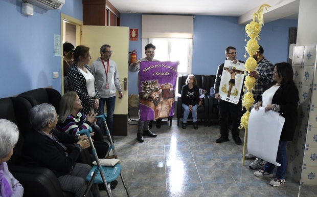 Los responsables de la Hermandad entregaron palmas y balconeras a los centros de dïa Catedi y Reina Sofía