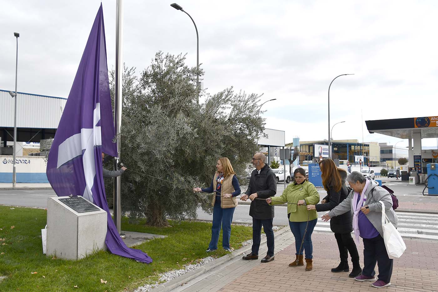 El alcalde y miembros de la corporación municipal, junto con la asociación AMEFA, han izado este lunes la bandera de la igualdad en la rotonda del Torreón de Albolote, uno de los actos programados para conmemorar el 25 de noviembre, fecha designada por la ONU como Día Internacional de la Eliminación de la Violencia contra la Mujer.