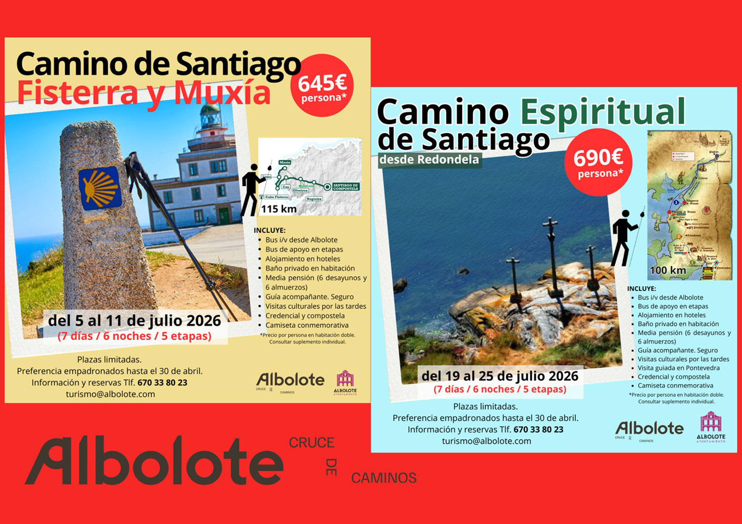 Las inscripciones ya están abiertas y se puede formalizar la reserva de plaza y obtener más información a través del correo turismo@albolote.com o en el teléfono 670 338 023 hasta completar los cupos previstos para cada salida.