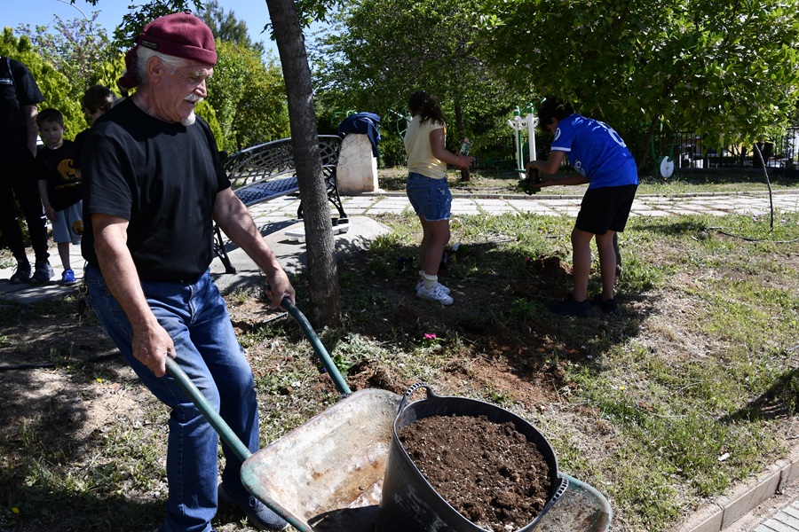 Aprovecharon el buen tiempo para sembrar plantas en los jardines de la zona y contaron con un cuentacuentos para los más pequeños